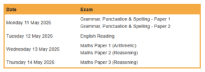 The key stage 2 tests are timetabled from Monday 11th May to Thursday 14th May 2026.